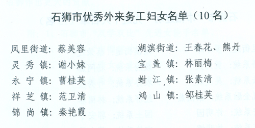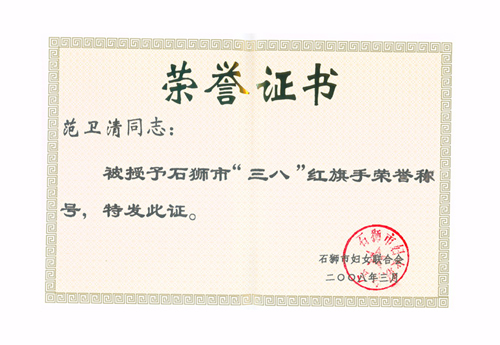 | 范衛(wèi)清同志被評為“市優(yōu)秀務工婦女”及“三八”紅旗手榮譽稱號 |