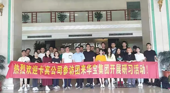 | 2019年8月22日-24日,卡賓服飾有限公司一行25人來到華寶集團(tuán)旗下石獅豪寶染織有限公司進(jìn)行參觀調(diào)研,副總經(jīng)理吳灶生、蔡文彬等領(lǐng)導(dǎo)熱情進(jìn)行了接待。 此次為期三天的學(xué)習(xí)調(diào)研對(duì)卡賓和華寶來說是一次雙方互相深入了解,增進(jìn)交流和學(xué)習(xí)的良好機(jī)會(huì),對(duì)于雙方未來爭取合作共贏打下堅(jiān)實(shí)的基礎(chǔ)。 (卡賓品牌介紹:Cabbeen卡賓服飾由金頂獎(jiǎng)得主卡賓先生于1997年創(chuàng)立,是中國領(lǐng)先的男裝設(shè)計(jì)師品牌,顛覆流行的品牌理念、探索獨(dú)特的時(shí)尚定位和堅(jiān)持前衛(wèi)的原創(chuàng)設(shè)計(jì)是其標(biāo)志性特色。