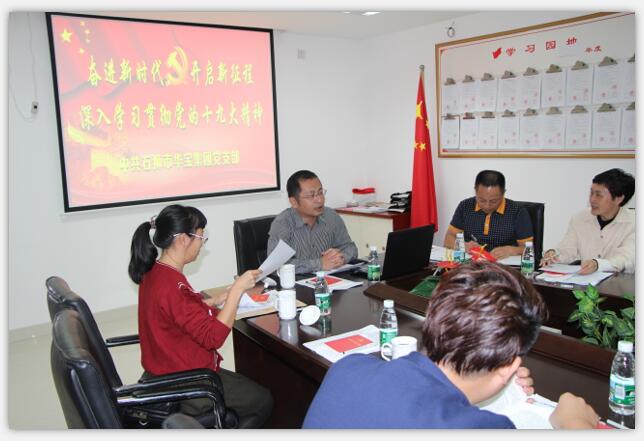| 2017年11月18日,在祥芝鎮(zhèn)黨委的關(guān)懷下,華寶集團(tuán)黨支部正式召開(kāi)學(xué)習(xí)黨的“十九大精神”和學(xué)習(xí)新黨章的全體黨員大會(huì),會(huì)議很榮幸地邀請(qǐng)到祥芝鎮(zhèn)黨委書(shū)記蔡振宇主持并講解“十九大精神”和新黨章黨規(guī)。會(huì)上,蔡振宇書(shū)記以幽默風(fēng)趣的語(yǔ)言,深入淺出、提綱挈領(lǐng)地介紹了黨的十九大報(bào)告,給華寶集團(tuán)的所有黨員們上了生動(dòng)的一課。   黨的十九大是一次不忘初心、牢記使命、高舉旗幟、團(tuán)結(jié)奮進(jìn)的歷史性盛會(huì),極大地鼓舞了全黨全國(guó)人民為實(shí)現(xiàn)中華民族偉大復(fù)興的中國(guó)夢(mèng)而奮斗的信心和力量,具有極其重大的歷史意義。當(dāng)前和今后一個(gè)時(shí)期,華寶集團(tuán)黨支部的首要政治任務(wù),就是認(rèn)真學(xué)習(xí)宣傳和全面貫徹落實(shí)黨的十九大精神,認(rèn)真學(xué)習(xí)貫徹習(xí)近平新時(shí)代中國(guó)特色社會(huì)主義思想,以新氣象、新作為開(kāi)啟決勝全面建成小康社會(huì)、全面建設(shè)社會(huì)主義現(xiàn)代化國(guó)家的新征程!   每個(gè)黨員要牢記黨的初心和使命,以黨的十九大精神為指引,以永不懈怠的精神狀態(tài)和一往無(wú)前的奮斗姿態(tài)創(chuàng)造無(wú)愧于新時(shí)代的新業(yè)績(jī),我們黨才能不負(fù)人民重托、無(wú)愧歷史選擇,凝聚起同心共筑中國(guó)夢(mèng)的磅礴力量。華寶集團(tuán)黨支部的所有黨員們就是要立足本職工作,爭(zhēng)創(chuàng)崗位新業(yè)績(jī),發(fā)揮好黨員先鋒模范作用。要牢記黨的初心和使命,以黨的十九大精神為指引,以永不懈怠的精神狀態(tài)和一往無(wú)前的奮斗姿態(tài)創(chuàng)造無(wú)愧于新時(shí)代的新業(yè)績(jī),我們黨才能不負(fù)人民重托、無(wú)愧歷史選擇,凝聚起同心共筑中國(guó)夢(mèng)的磅礴力量。華寶集團(tuán)黨支部的所有黨員們就是要立足本職工作,爭(zhēng)創(chuàng)崗位新業(yè)績(jī),發(fā)揮好黨員先鋒模范作用。   學(xué)習(xí)黨章是全黨應(yīng)盡義務(wù)和莊嚴(yán)責(zé)任,對(duì)強(qiáng)化全黨黨章意識(shí),增強(qiáng)黨的創(chuàng)造力、凝聚力、戰(zhàn)斗力具有極為重要的作用。全黨同志要逐條逐句通讀黨章,全面理解黨的綱領(lǐng),牢記入黨誓詞,牢記黨的宗旨,牢記黨員義務(wù)和權(quán)利,尊崇黨章、遵守黨章、維護(hù)黨章,堅(jiān)定理想信念,對(duì)黨絕對(duì)忠誠(chéng)。并講解“十九大精神”和新黨章黨規(guī)。   中國(guó)人民和中華民族前程偉大、前途光明,中國(guó)特色社會(huì)主義事業(yè)生機(jī)勃發(fā)、任重道遠(yuǎn)。讓我們更加緊密地團(tuán)結(jié)在以習(xí)近平同志為核心的黨中央周圍,高舉中國(guó)特色社會(huì)主義偉大旗幟,把思想和行動(dòng)統(tǒng)一到黨的十九大精神上來(lái),把智慧和力量凝聚到落實(shí)黨的十九大確定的目標(biāo)任務(wù)上來(lái),不忘初心、牢記使命,銳意進(jìn)取、埋頭苦干,為決勝全面建成小康社會(huì)、奪取新時(shí)代中國(guó)特色社會(huì)主義偉大勝利、實(shí)現(xiàn)中華民族偉大復(fù)興的中國(guó)夢(mèng)、實(shí)現(xiàn)人民對(duì)美好生活的向往而繼續(xù)奮斗!   |