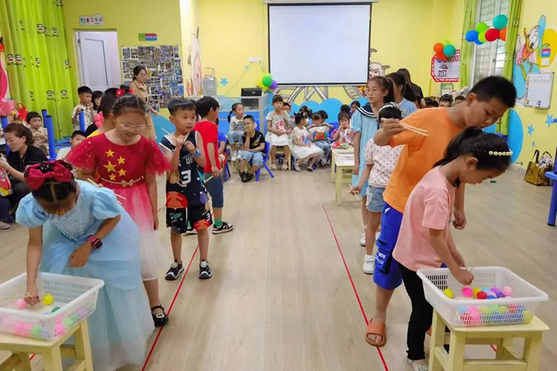 當(dāng)天,“四點(diǎn)半活動(dòng)中心”也開展了各種趣味的游戲,包括筷子夾球、揪尾巴、套禮物等活動(dòng)。在教室里,所有的小朋友們一起歡快地玩游戲、比默契,在一片片歡聲笑語中度過了輕松愉快的游戲時(shí)光。