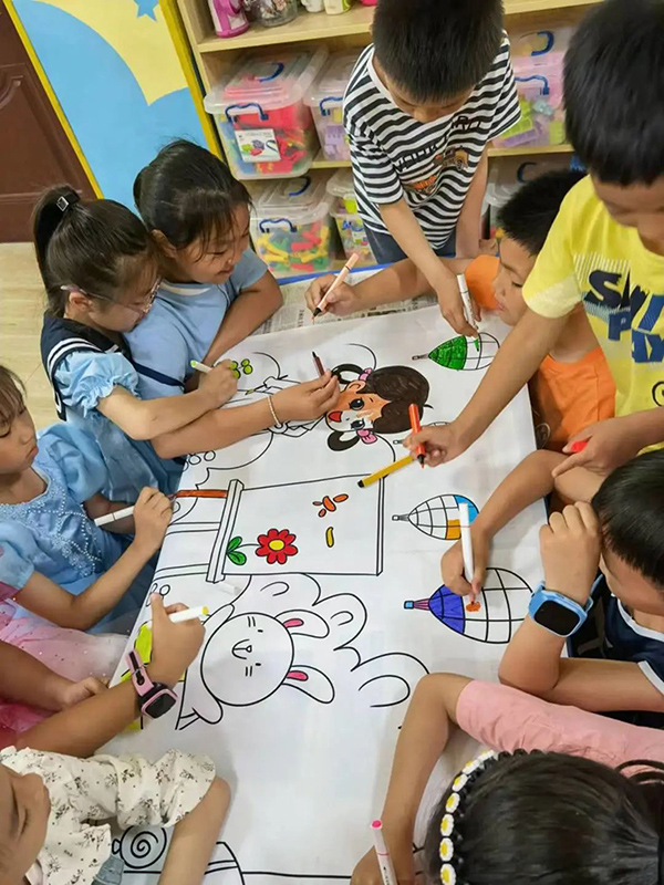 全體小朋友先對喜愛的美術(shù)作品進(jìn)行投票,再一起進(jìn)行涂鴉活動(dòng),在涂涂畫畫中激發(fā)了孩子們感受美、表現(xiàn)美、創(chuàng)造美的情感。