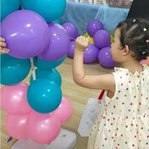 “四點(diǎn)半”活動(dòng)中心貼心地為小朋友準(zhǔn)備了許多小游戲,贏取禮品。 第一項(xiàng)游戲是扎氣球。每位小朋友都可以隨機(jī)扎破一個(gè)氣球,贏取藏在氣球里的小禮品。隨著一聲聲的“嘭”,小朋友興奮地?fù)炱饸馇蚶锏募垪l去兌換禮品。